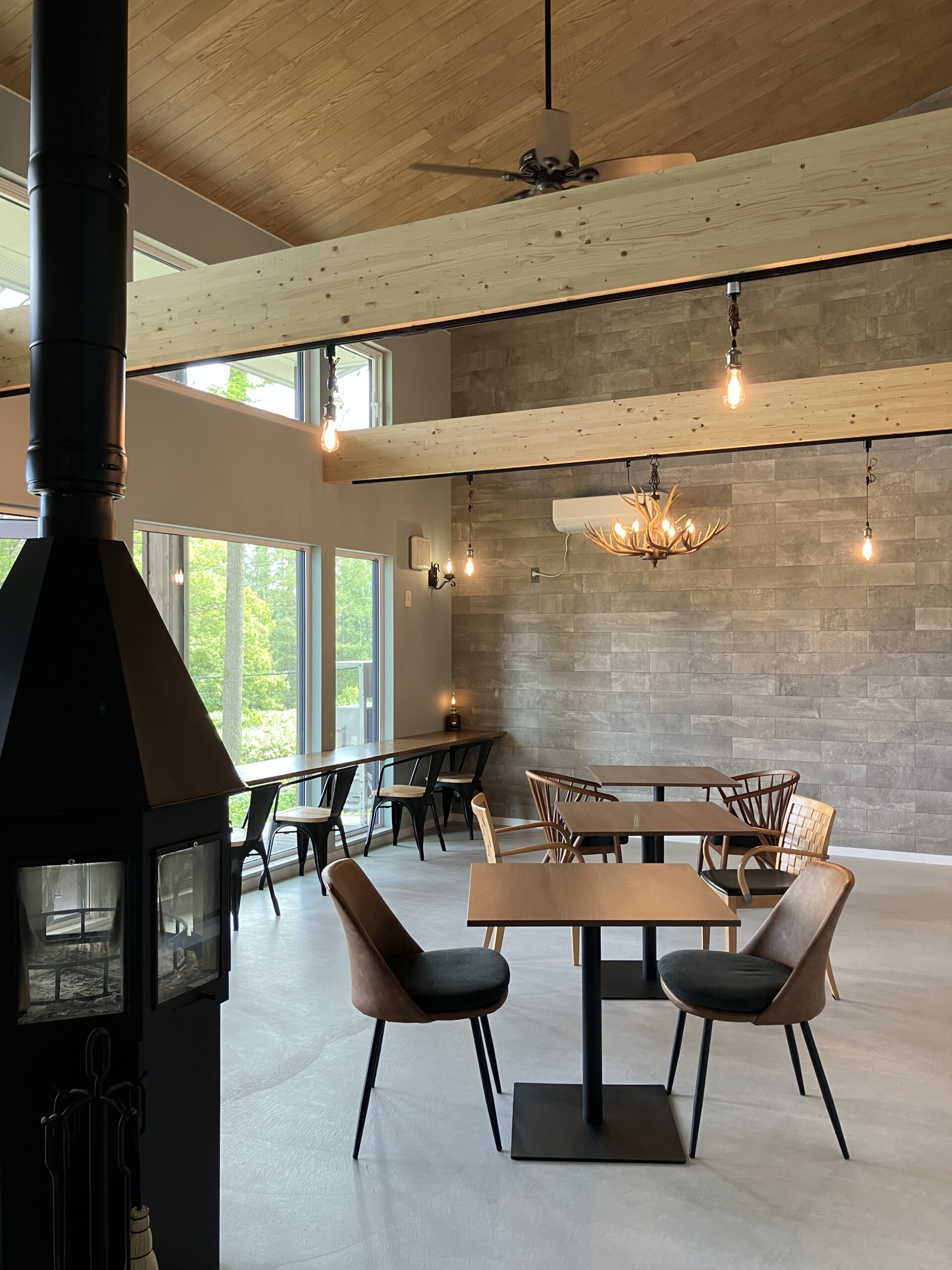 2025年8月1日にOPENした360度炎がみえる薪ストーブを備えた管理棟兼CAFE&BARです。